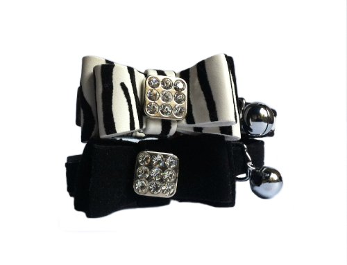 Collier pour chat - collier de velours noir pour animal domestique avec nœud papillon et clochette