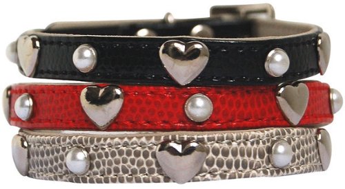 Collier en simili cuir réglable avec accessoires originaux. Equipé avec un grelot et un élastique de sécurité.