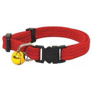 Collier City tout élastique. réglable. avec 1 grelot et 1 boucle métal. Existe en noir ou rouge. spécial chat toutes tailles