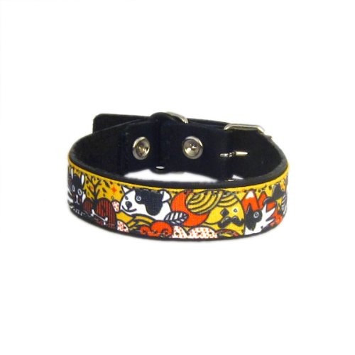 Collier en cuir pour chat Toutouland orange avec système de fermeture par boucle passant en métal. D'une largeur de 1,7 cm, ce collier convient aux chats ayant un tour de cou allant de 23 à 27 cm. Illustration de l'artiste Grafakie. Fabriqué en France